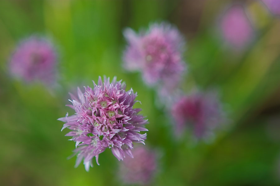 I sent our new Canon 40D with Ann to take a photo of someone at her office for their newsletter and went to the backyard to take a couple of photos of some flowers we have using our old (probably about 5 years old now) Canon 10D. Snapped a couple of photos. This photo of chives is one of my favorites and the other is a flower I don’t know the name of, but dug in Octagon, Alabama last year. It is beautiful–the flowers close every afternoon when it is hot and open up when it is cool.